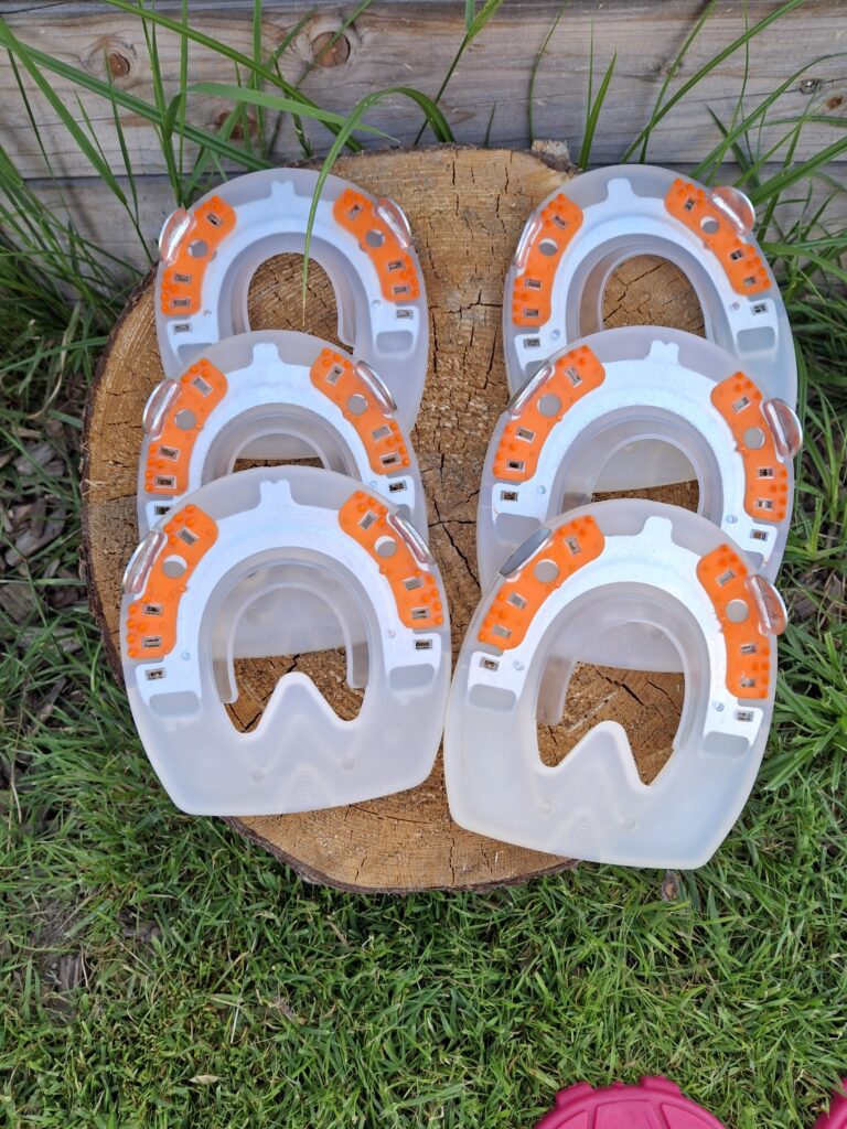 Alternativer permanenter Hufschutz, der ohne Nägel auskommt und so dem Huf weder strukturell durch Löcher schädigt noch in seiner Flexibilität einschränkt und somit dem wichtigen Hufmechanismus nicht behindert.